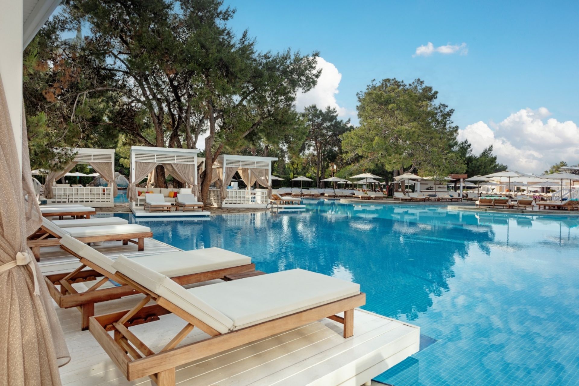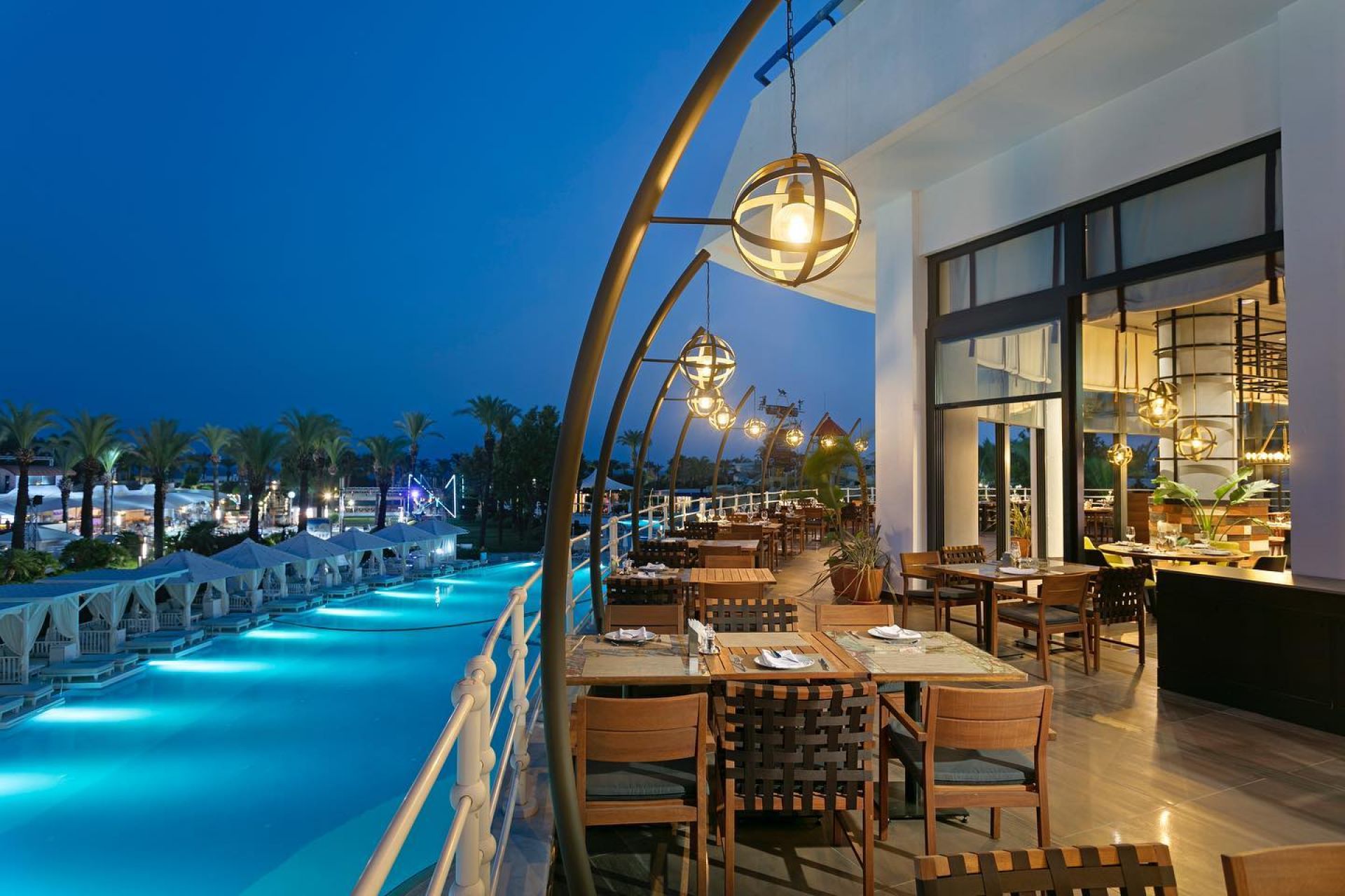 Основен ресторант, 3 а - ла - карт ресторанти (италиански, турски и рибен), 3 открити басейна, закрит басейн, закрит детски басейн, водни пързалки, барбекю, сладкарница, лоби бар , диско бар, витамин бар, боулинг бар, амфитеатър, кино, музика на живо, дискотека (безплатно).