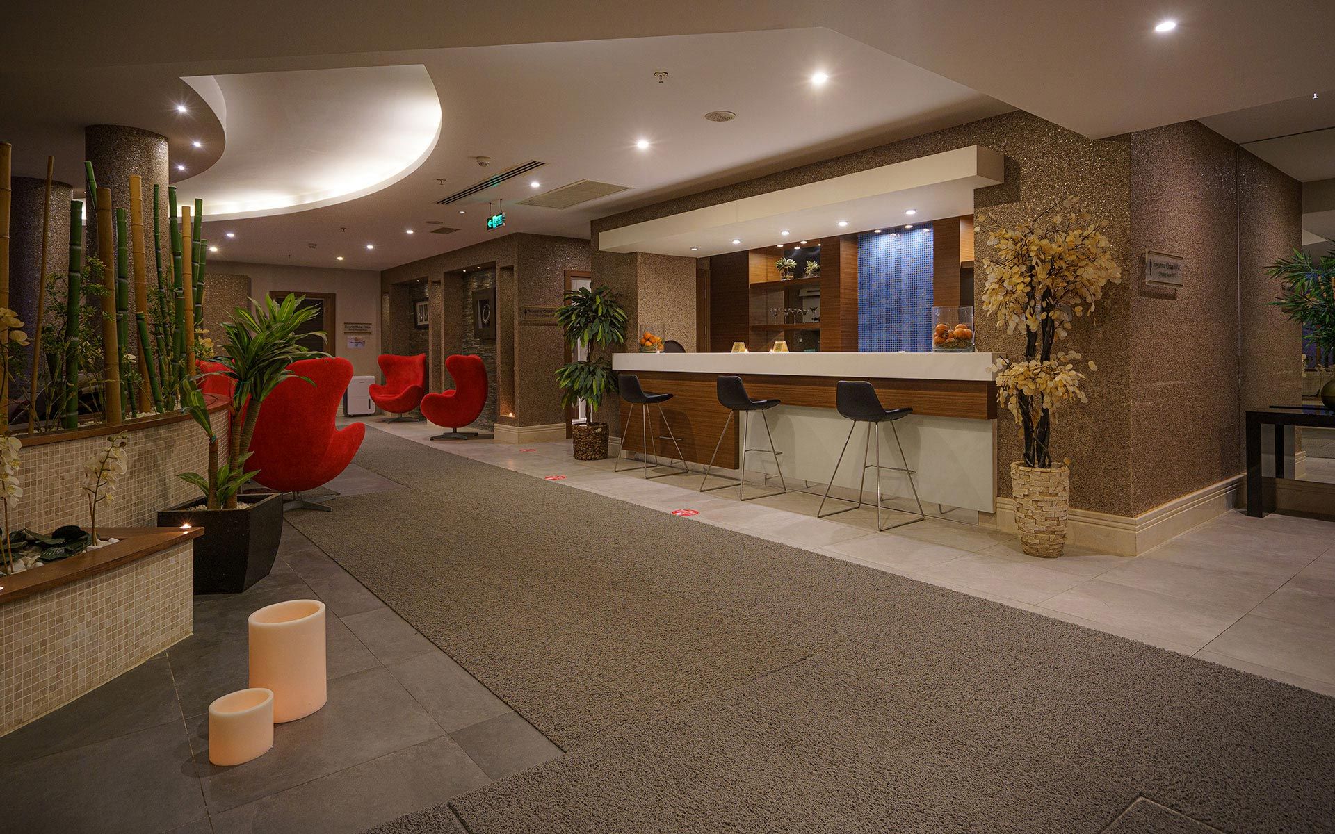 Основен ресторант, 2 бара, 3 открити (1 термален) и 2 закрити басейна (1 термален), конферетни зали, магазини, паркинг.