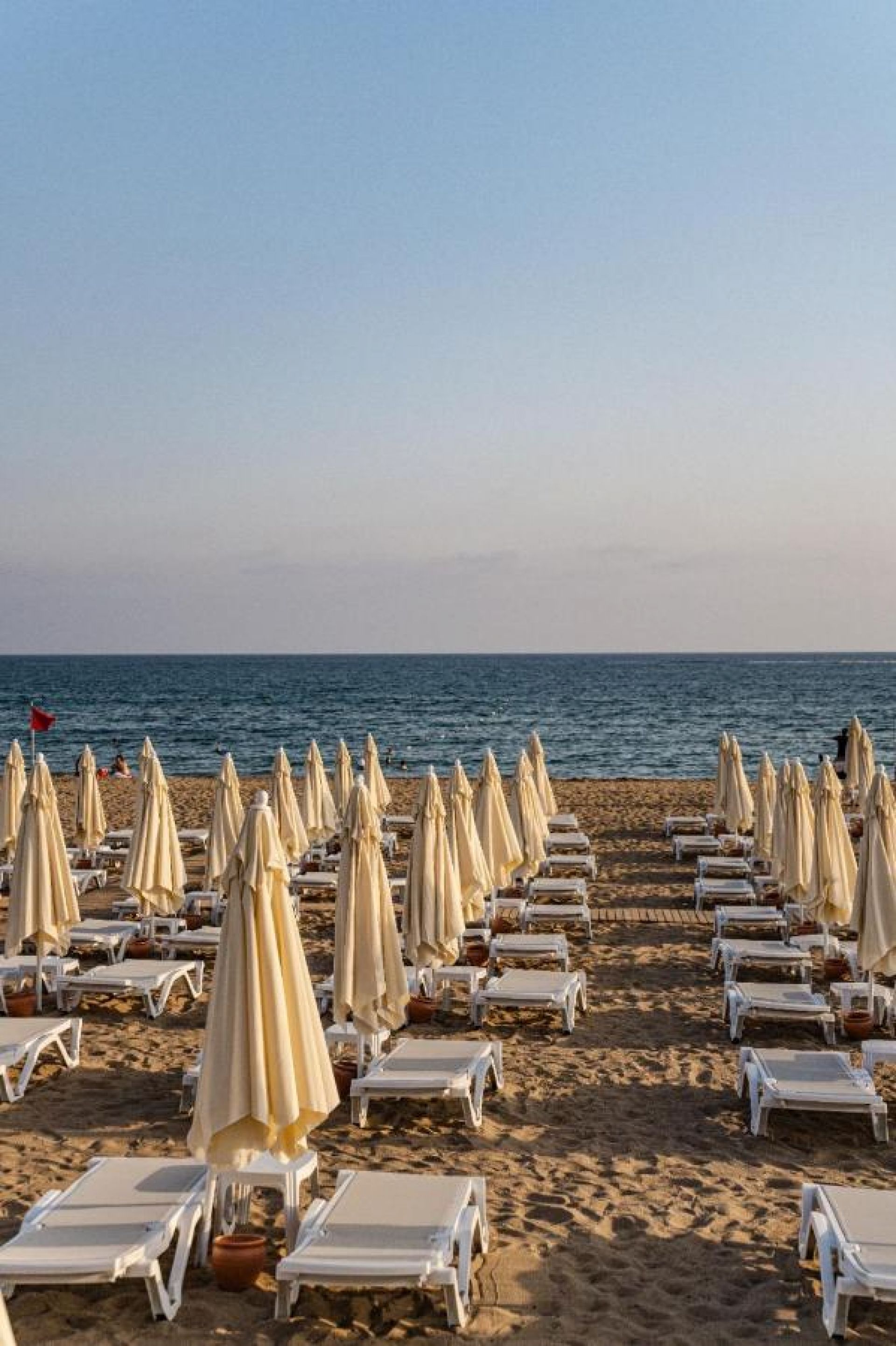 Собствен, пясъчно-чакълест на 900м от хотела с осигурен безплатен шатъл на всеки 15 минути. Чадъри, кърпи и шезлонги на плажа и басейна – безплатно.