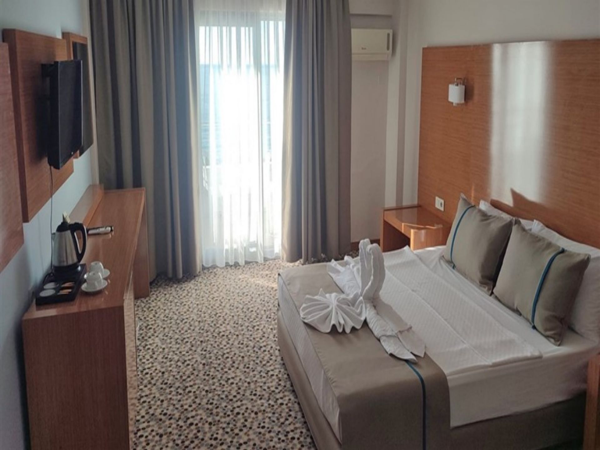 Хотелът разполага със 128 стаи, от които 80 с изглед градина (18-22 кв.м) и 48 с изглед море (18-22 кв.м) , всички оборудвани с климатик, телевизор, телефон, баня с душ, сешоар, минибар, балкон. Почистване на стаите - всеки ден, смяна на спалното бельо - 2 пъти в седмицата