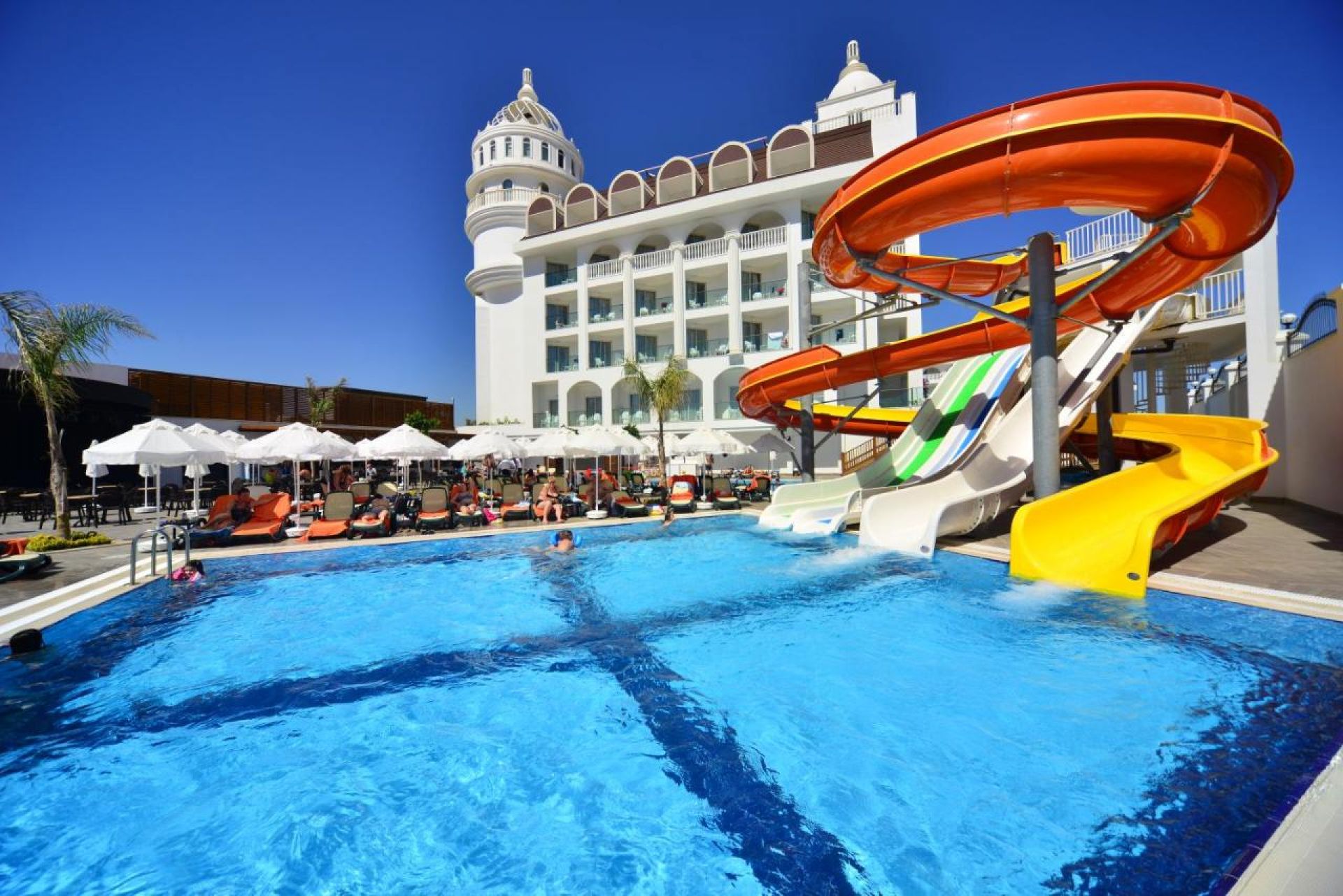 Основен ресторант, 2 а-ла-карт ресторанта (турски, италиански – 1 безплатно посещение на 1 от ресторантите при минимален престой от 5 нощувки, с предварителна резервация), сладкарница, 3 бара, снек бар на плажа, 1 открит и 1 закрит басейн, аквапарк с 3 водни пързалки, СПА център, магазини, паркинг.