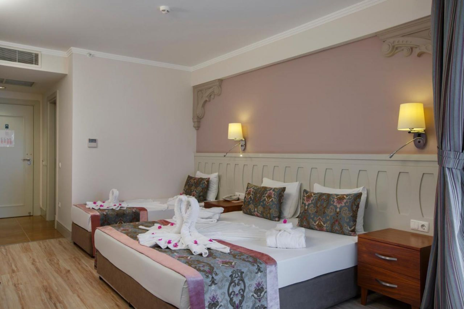 Хотелът разполага с общо 344 стаи, от които разположени в 4-етажна основна сгради и 1 допълнителна сграда, от които Standard Room Land View (изглед суша - 28 м2), Standard Room Pool View (изглед басейн - 28 м2), Family Room (2 отделни спални, 1 баня - 36 м2), Economy Room (без балкон - 18 м2).