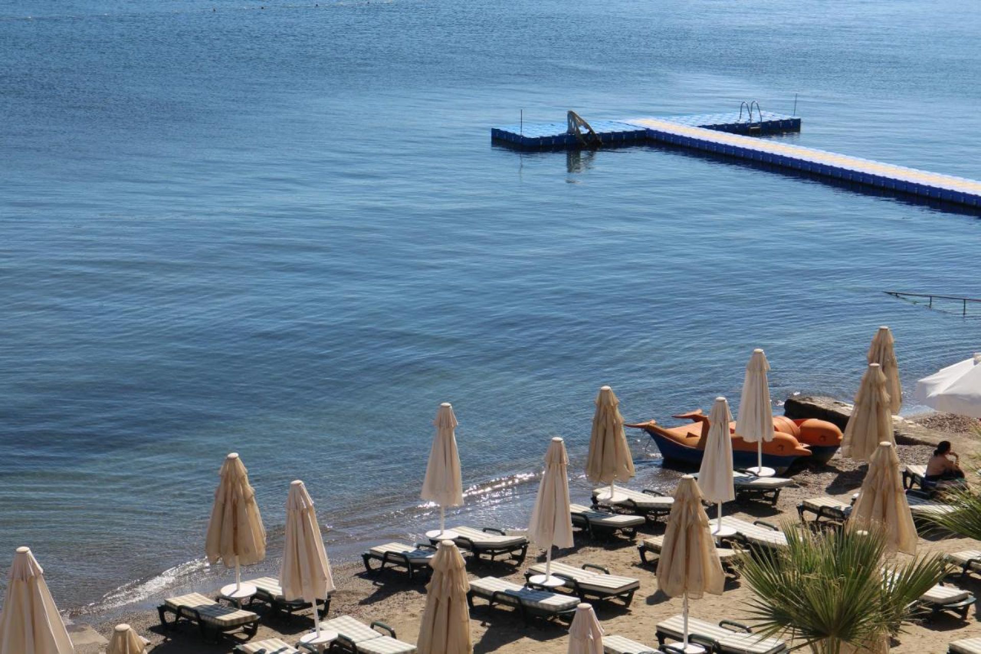 Собствен, пясъчен. Чадъри, шезлонги и матраци на плажа и при басейна – безплатно. Плажни кърпи – безплатно.