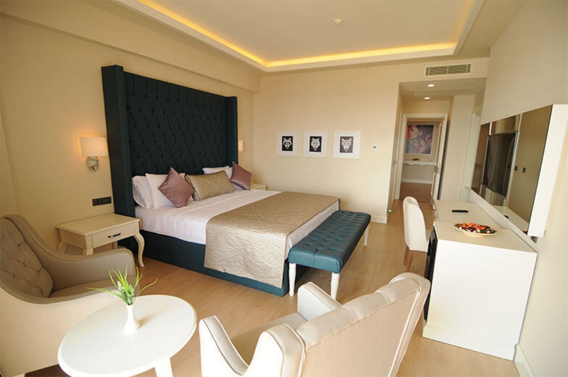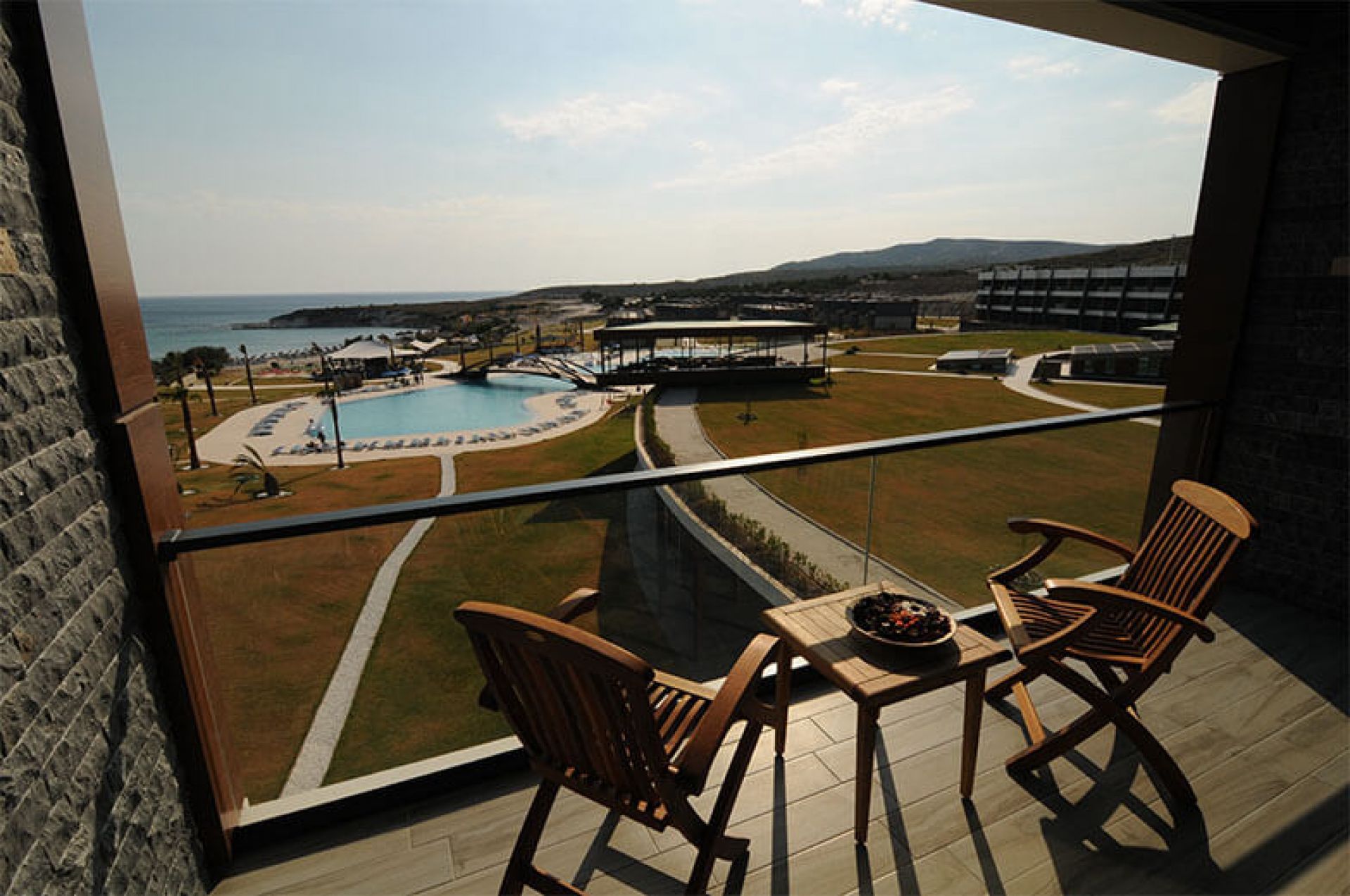 Хотелът разполага с основна сграда със общо 102 стаи, от които стабндартни стаи с изглед море - 32 кв.м.; суити с изглед море (спалня, всекидневна, 2 тоалетни и 1 баня) - 102 кв.м; 65 вили с изглед море или градината - 205 кв. м ( на 2 етажа , на първи етаж има хол с кухня и маса за хранене, а на втори две двойни спални; с три тоалетни и две бани).