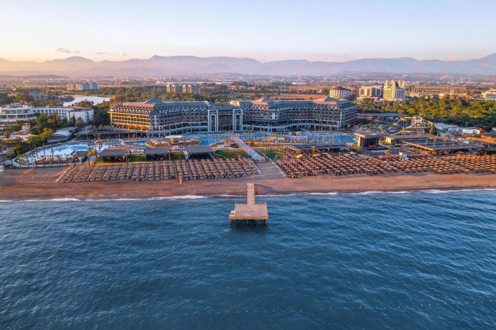 Основен ресторант, 6 а-ла-карт ресторанта (турски, италиански, рибен, гръцки, азиатски, интернационален) - срещу заплащане и с предварителна резервация, 7 бара, 1 сладкарница, 9 басейна, аквапарк за възрастни и деца с общо 14 пързалки, СПА център, Wi-Fi, магазини, паркинг.
