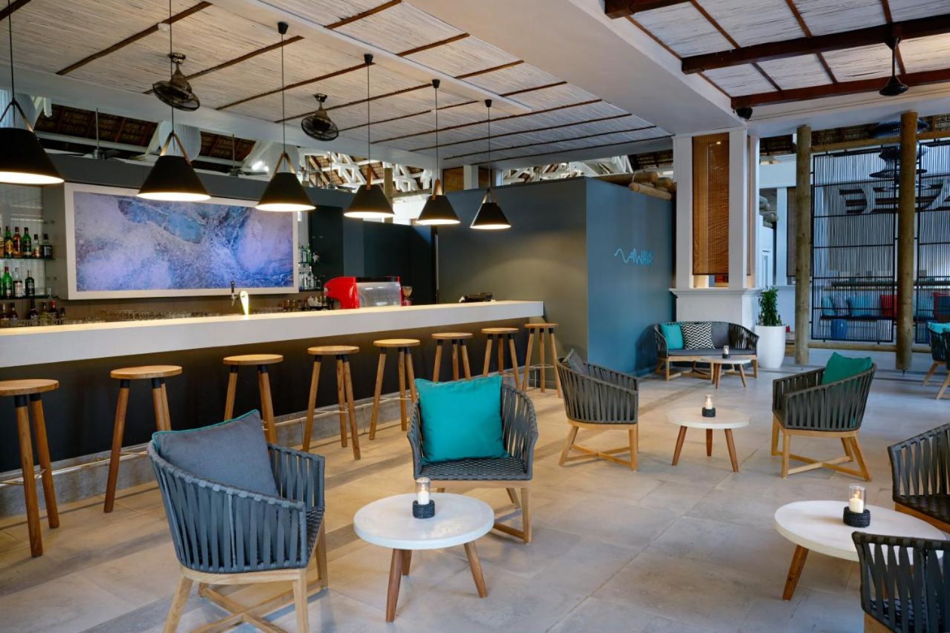 Хотелът разполага с 182-те хотелски стаи. Декорът отразява райската среда на острова, с вариации на бяло, индиго, тюркоаз и морско синьо – напомнящи за небето, лагуната и океана отвъд него. Голяма част от декора е направен от рециклирани елементи, докато някои мебели са изработени от местни занаятчии и климатикът се изключва автоматично при отваряне на вратите.